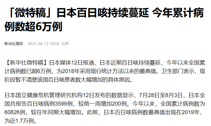 图1. 日本百日咳最新资讯(来源新华社国际)