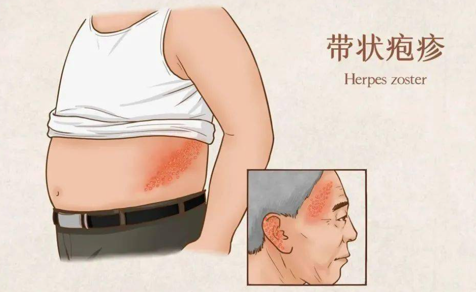 带状疱疹,民间俗称“腰缠龙”,“蛇串疱”,是由水痘-带状疱疹病毒(VZV病毒)引起的感染性皮肤病。与水痘起源于同种病毒,只是在不同时期,表现为不同疾病。儿童时期,感染水痘-带状疱疹后,会发水痘,水痘痊愈后,病毒会潜伏神经节内。随着年龄增长,患有各种慢性疾病,长时间劳累,在机体免疫功能低下,VZV病毒会再激活复制而引发带状疱疹。