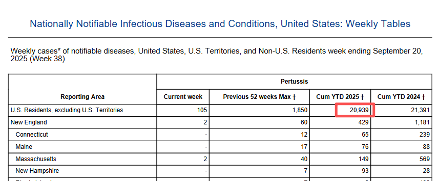 图3. 美国2025年1-9月百日咳最新报告病例数据(来源美国CDC)